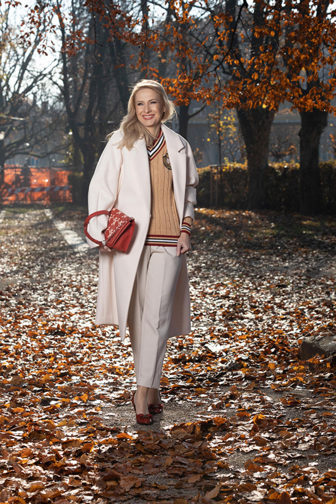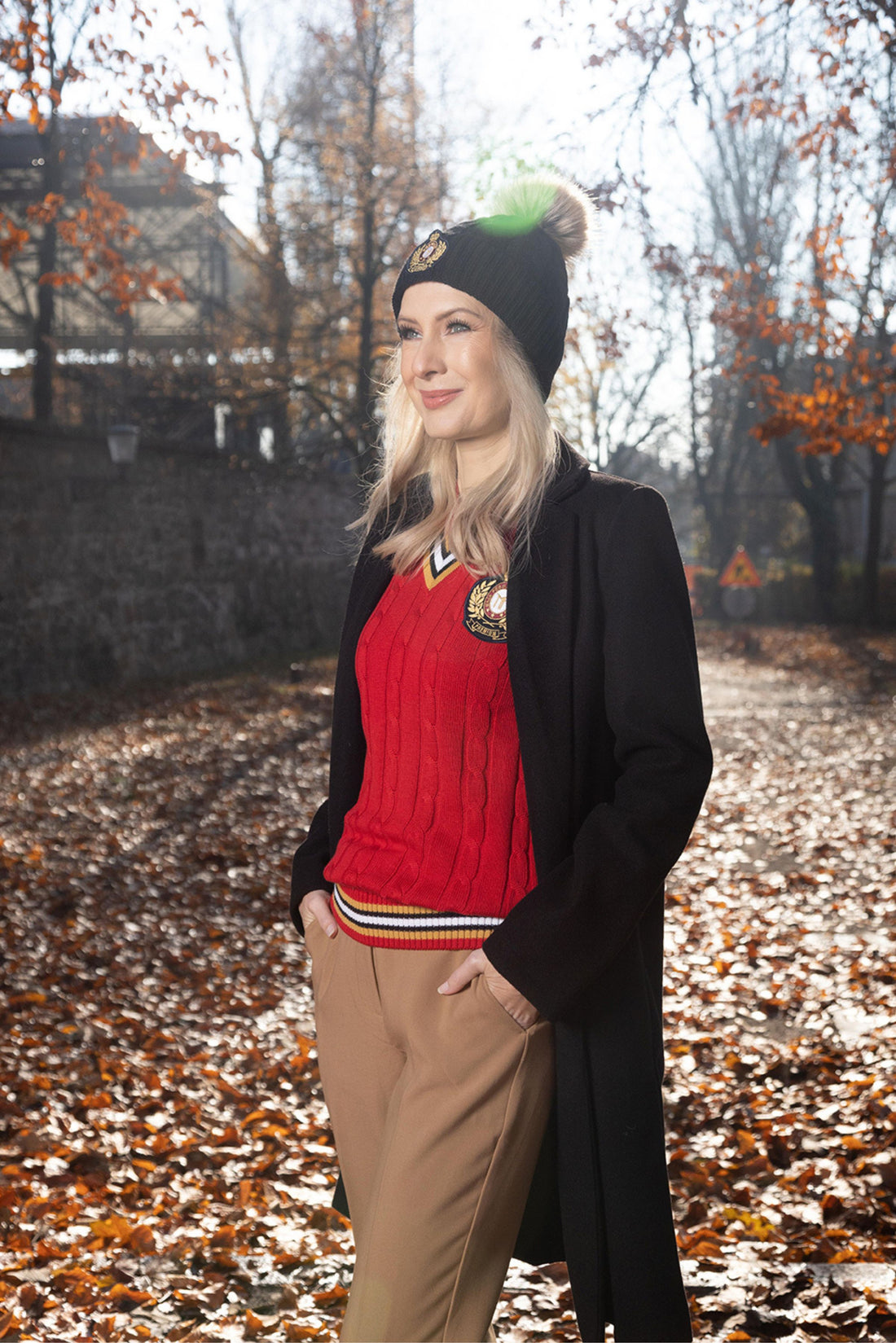 We are contemporary, high-quality clothing brand, designed and produced in Slovenia., uses only European based workforce, which is active in its creation process and focuses on transparency, female health, and innovation while designing high quality, flattering, modern, and contemporary clothes.RED CABLE-KNIT SWEATER