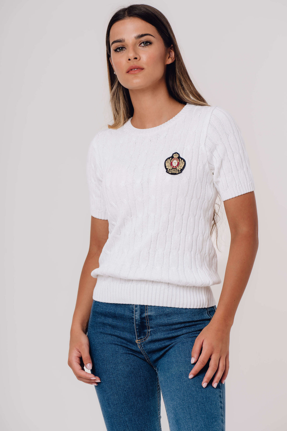 Organic Cotton Cable-Knit Short-Sleeve WHITE